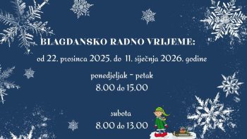 Od 22. prosinca 2025. godine do 11. siječnja 2026. godine, Knjižnica će raditi: ponedjeljak – petak: 8.00 – 15.00 subota:…