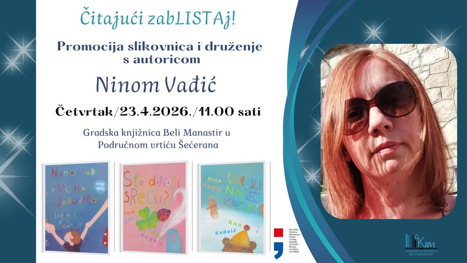 Nina Vađić voli pisati, voli glazbu, umjetnost i kreativne, pomalo drugačije stvari. Po prirodi je znatiželjna, maštovita i društvena. U Zagrebu vodi privatnu glazbenu školicu u kojoj održavaju igraonice, radionice i uče djecu svirati. Autorica je brojnih slikovnica od kojih navodimo samo neke: „Ti nisi kao mi“, „Velika ljubav“, „Zahvalnost“, „Svako zlo za neko dobro“, a u Područnom vrtiću Šećerana predstavit će slikovnicu „Što donosi sreću“.