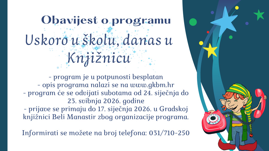 Obavijesti Uskro u školu, danas u knjižnicu 18 prosinca, 202515 siječnja, 2026admin Pristupnica za prijavu u program Pregled Programa